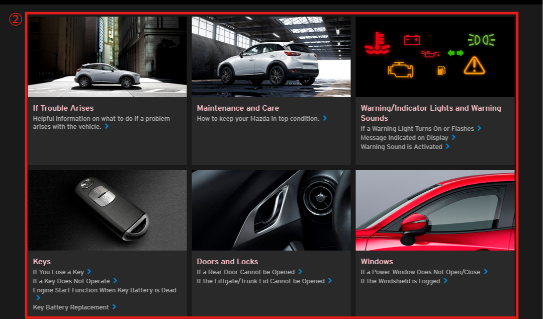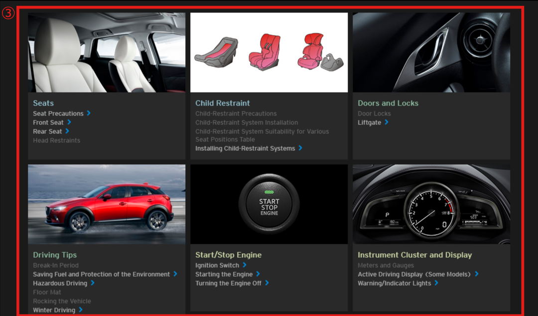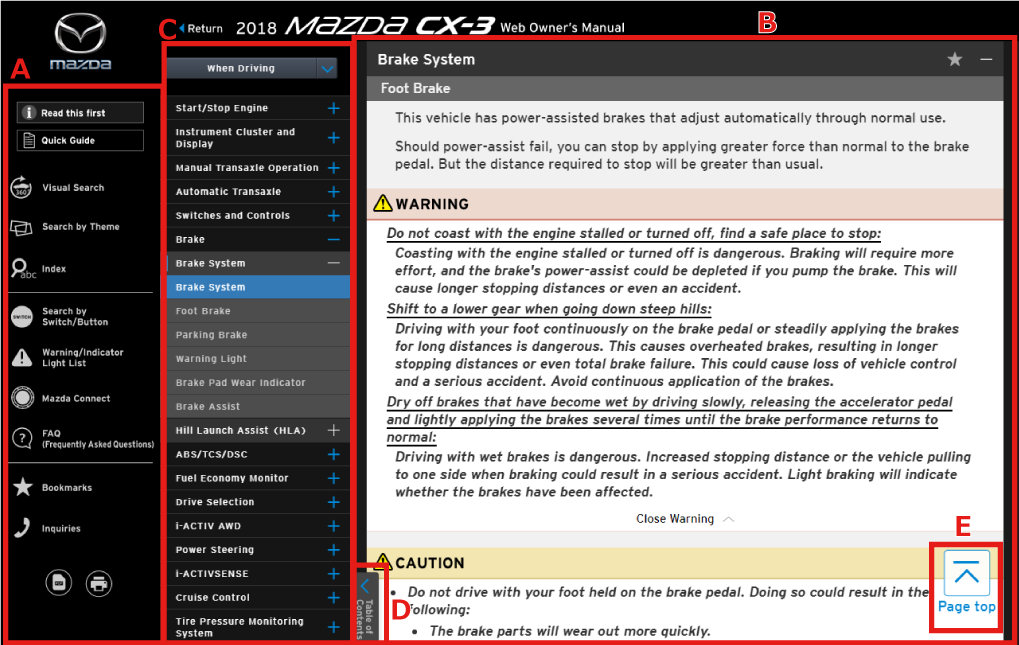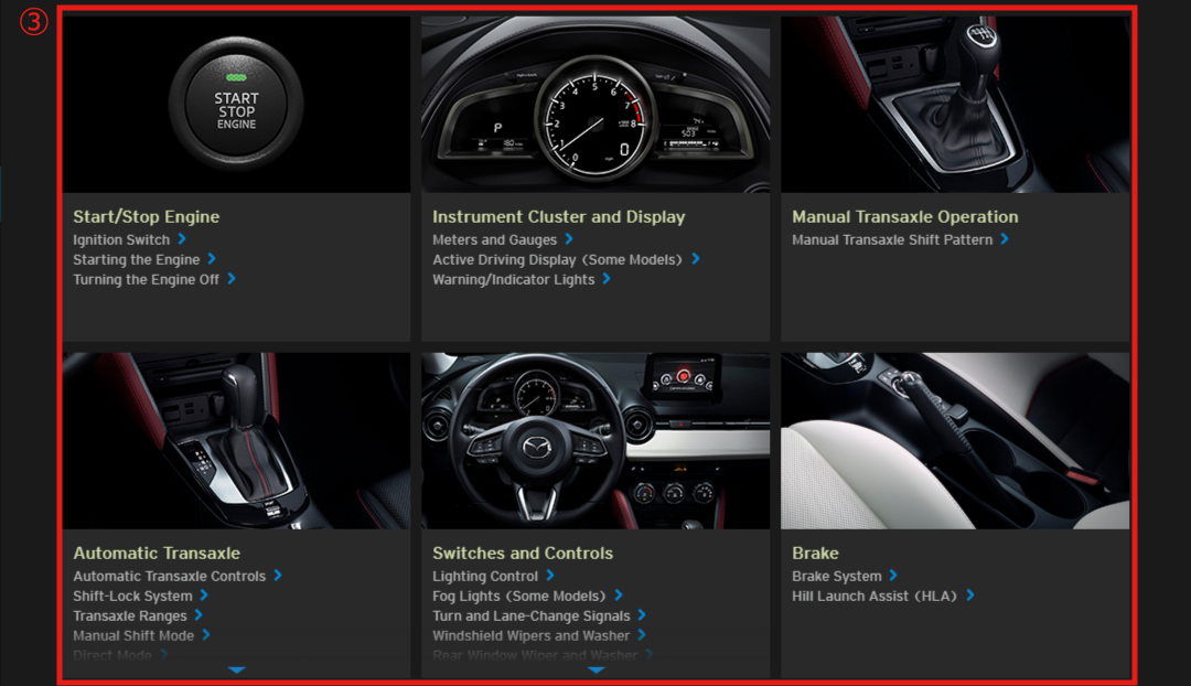 Illustrations complement the text to best explain how to enjoy your Mazda. By reading this Web owner's manual, you can learn about the features, important safety information, and driving under various road conditions.