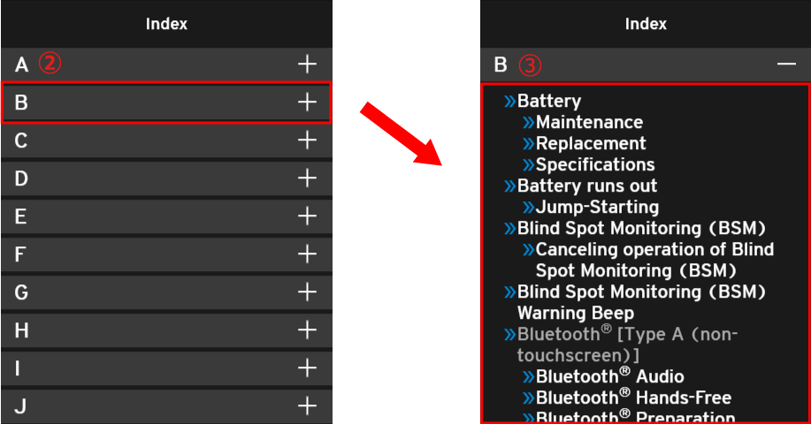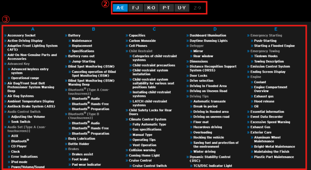 You can search for the information you need by selecting the scenario in which you are driving the vehicle.