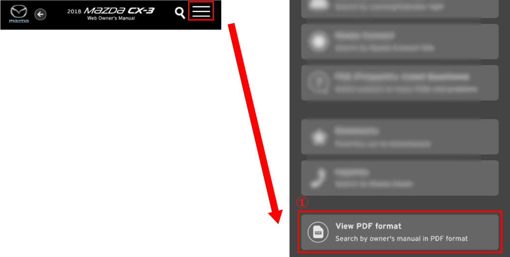 Owner's manuals in PDF format are displayed when selecting (View PDF format) from the menu.
