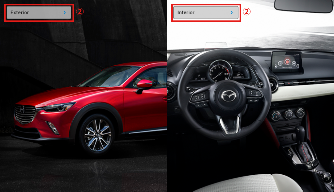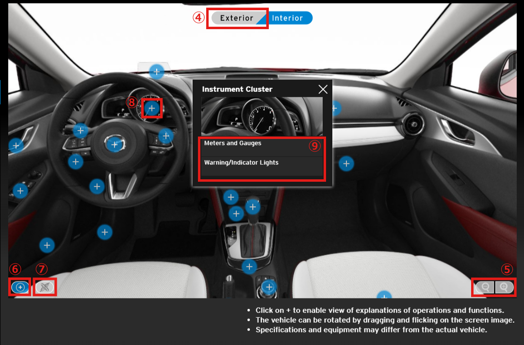 In addition, if you are using a mobile phone or other computer device which has a gyroscope function, the angles in the interior of the vehicle can be switched by moving the device (vehicle interior images only).