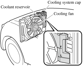 If the cooling fan does not operate while the engine is running, the engine temperature will increase. Stop the engine and call an Authorized Mazda Dealer.
