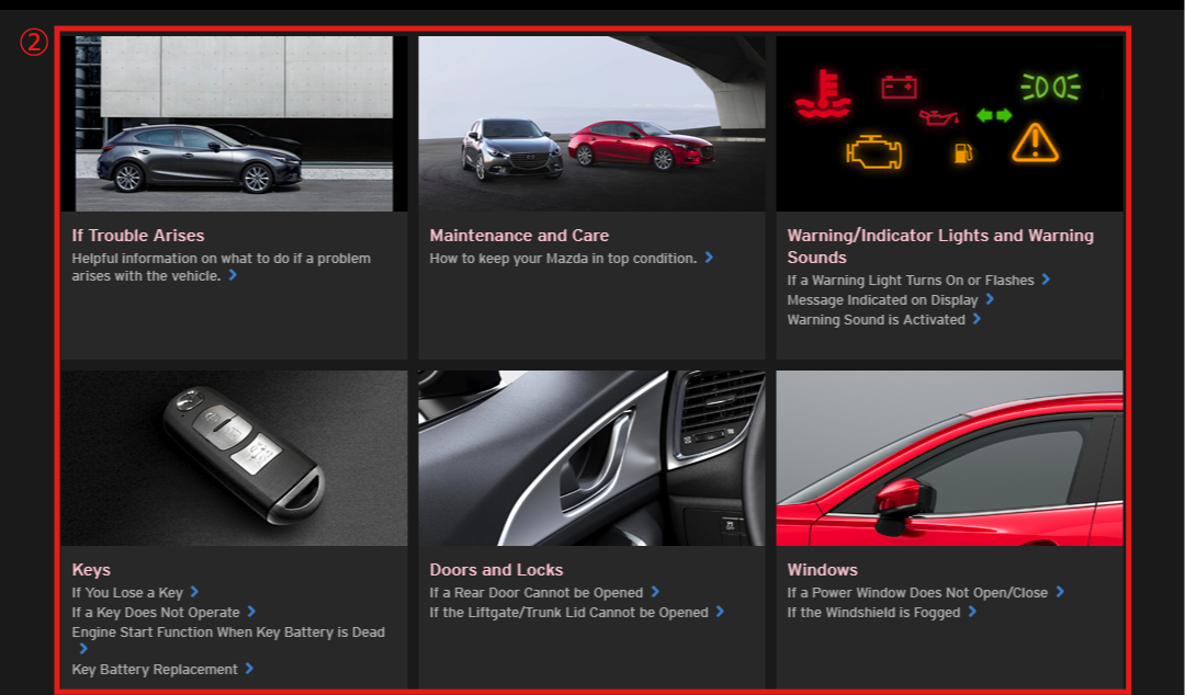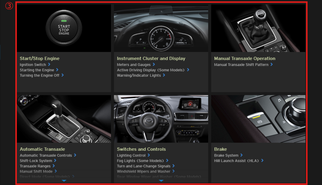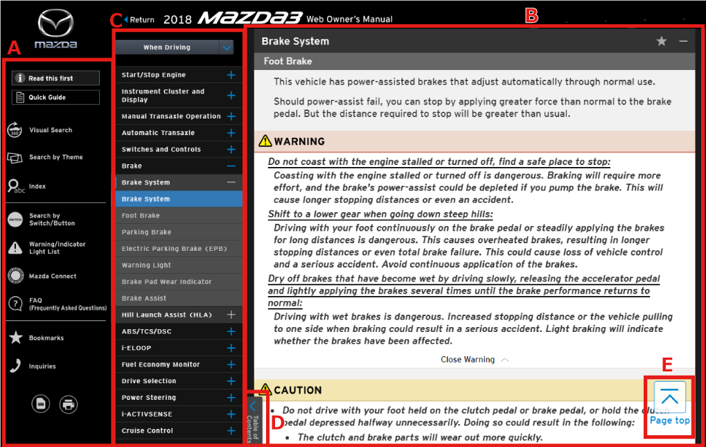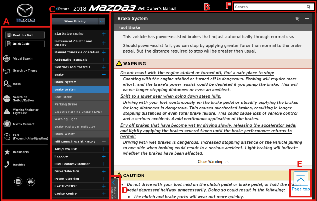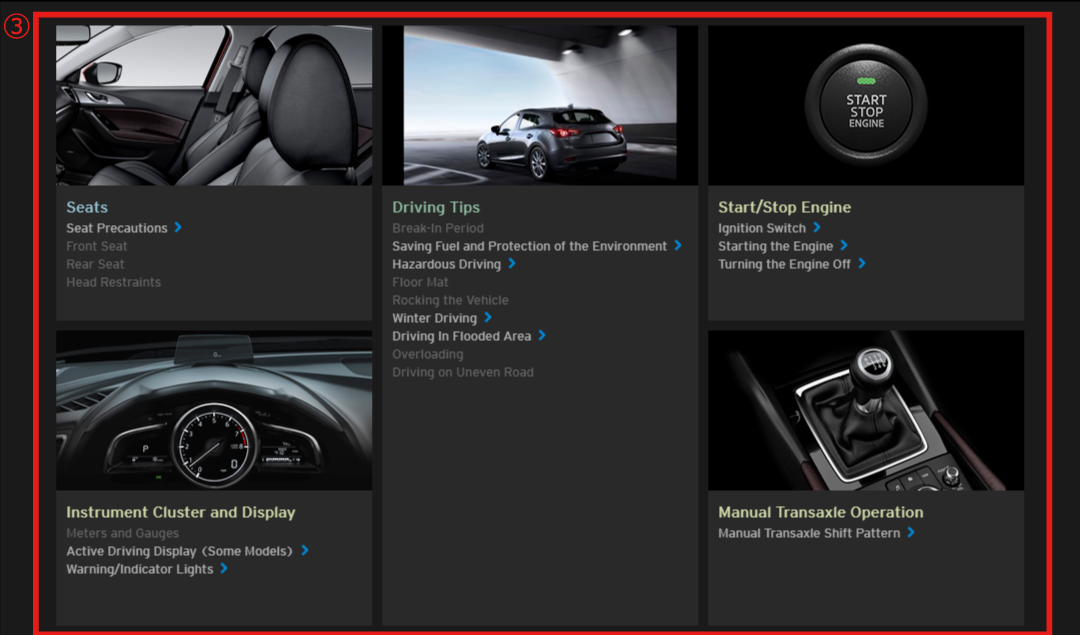 Illustrations complement the text to best explain how to enjoy your Mazda. By reading this Web owner's manual, you can learn about the features, important safety information, and driving under various road conditions.