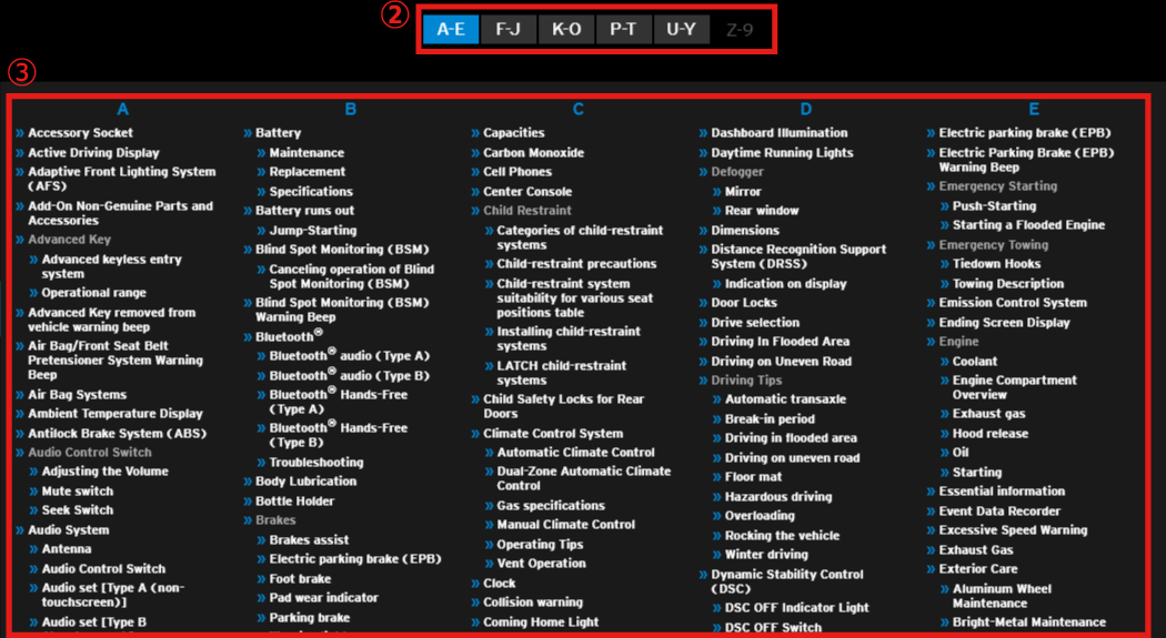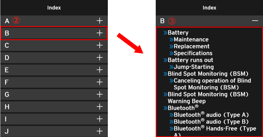 You can search for the information you need by selecting the scenario in which you are driving the vehicle.