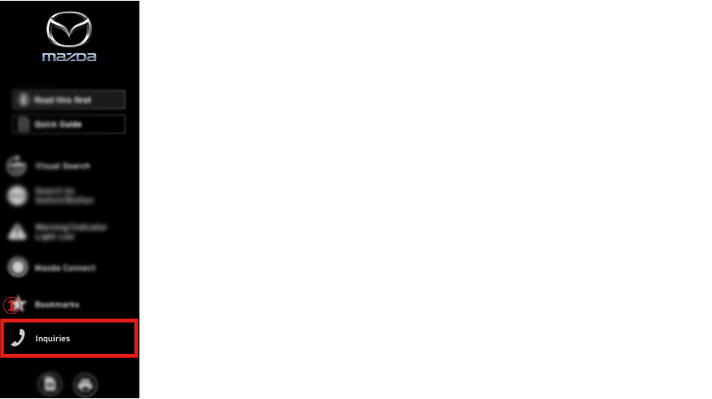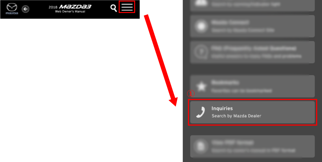 The search engine for Mazda Dealers is displayed when selecting Inquiries from the menu.