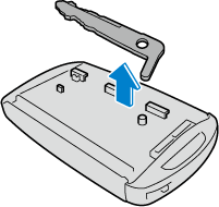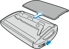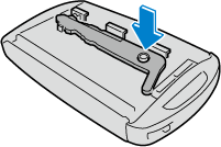 Retirez le couvercle inférieur tout en faisant glisser le bouton dans le sens de la flèche.