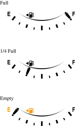 If the fuel level is low, () and () turn an amber color. Refuel as soon as possible.