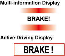 If your vehicle rapidly closes in on the vehicle ahead because the vehicle ahead applies the brakes suddenly while you are traveling in headway control, the warning sound activates and the brake warning is indicated in the display. Always verify the safety of the surrounding area and depress the brake pedal while keeping a safer distance from the vehicle ahead. Additionally, keep a safer distance from the vehicles behind you.