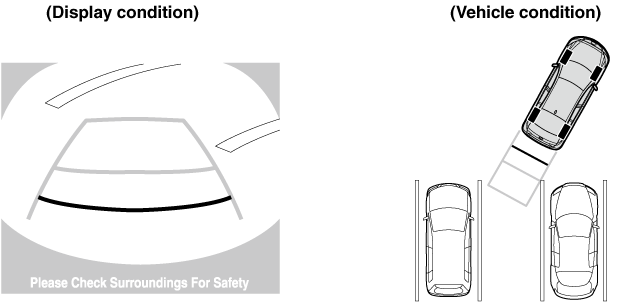 Because there may be a difference between the displayed image, such as indicated below, and the actual conditions when parking, always verify the safety at the rear of the vehicle and the surrounding area directly with your eyes.