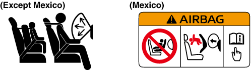 • This highly-visible label is displayed which warns against the use of a rear-facing child-restraint system on the front passenger seat.