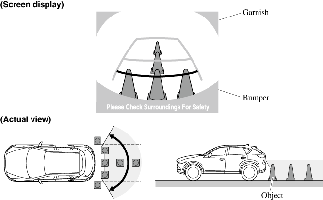• The displayable range is limited. Objects under the bumper or around the bumper ends cannot be displayed.