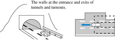 Under the following conditions, the radar sensors (rear) cannot detect target objects or it may be difficult to detect them.