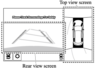 Displays the image of the area around the vehicle and the rear of the vehicle.