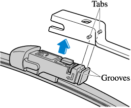 Align the wiper arm tabs with the blade component grooves.