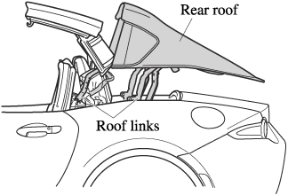 When cleaning the drainage outlets, be careful not to touch the roof links or the framework of the rear roof. Otherwise, you could get injured.