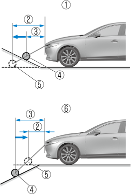 If the vehicle is on a slope, obstructions taken by the camera can appear farther or closer than the actual distance from the vehicle.
