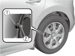 Always align the notch on the wheel cover with the tire valve of the wheel. Otherwise, it could cause damage to the wheel cover and the tire valve.