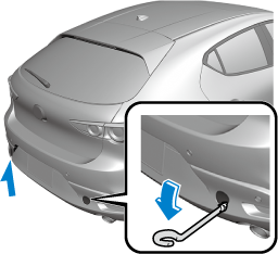 Remove the tiedown eyelet and the lug wrench from the luggage compartment (Search).