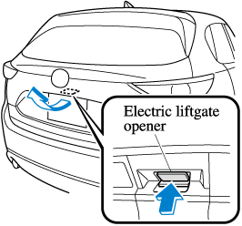 Press the electric liftgate opener on the liftgate and raise the liftgate. The hazard warning lights flash twice and the liftgate opens automatically after the beep sound is heard.