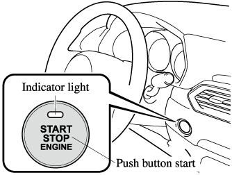 After starting the engine, the push button start indicator light (amber) turns off and the ignition switches to the ON position.