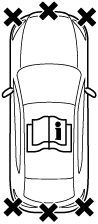 The position of a sensor which has detected an obstruction is indicated. The gauge illuminates in different areas depending on the distance to an obstruction detected by the sensor.