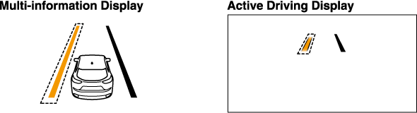 If the steering wheel, accelerator pedal, or brake pedal is operated abruptly and the vehicle moves close to a white (yellow) line, the system determines that the driver is making a lane change and the LAS & LDWS operation is temporarily canceled. The LAS & LDWS becomes operational again when the system detects white (yellow) lane lines while the vehicle is being driven normally within its vehicle lane.