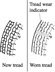 If a tire wears evenly, a wear indicator will appear as a solid band across the tread.