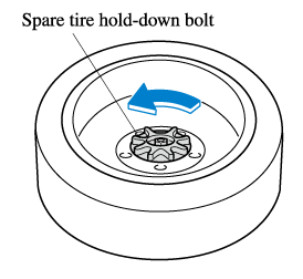 For vehicles not equipped with a sub-woofer, turn the spare tire hold-down bolt counterclockwise and remove the spare tire.