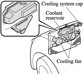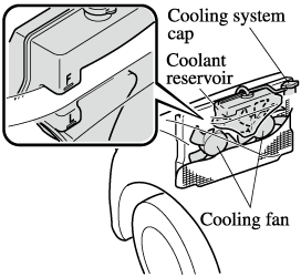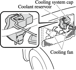 If the cooling fan does not operate while the engine is running, the engine temperature will increase. Stop the engine and call an Authorized Mazda Dealer.