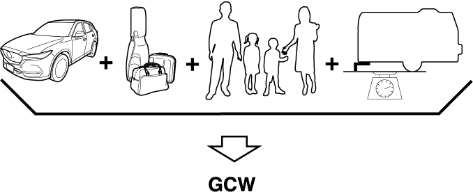 GCWR (Gross Combination Weight Rating) is the maximum allowable weight of the vehicle and the loaded trailer - including all cargo and passengers - that the vehicle can handle without risking damage. (Important: The towing vehicle's braking system is rated for operation at GVWR, not at GCWR. Separate functional brakes should be used for safe control of towed vehicles and for trailers weighing more than 1,500 lbs). The GCW must never exceed the GCWR.