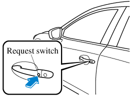 To unlock the driver's door, press the request switch. A beep sound will be heard twice and the hazard warning lights will flash twice.