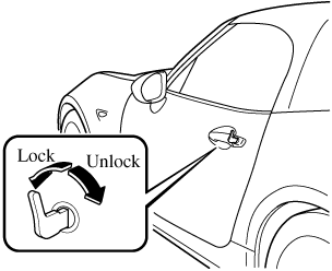 Holding the auxiliary key in the unlocked position in the driver's door lock for about a second unlocks both doors. To unlock the driver's door and the fuel-filler lid, insert the auxiliary key into the driver's door lock and turn the auxiliary key briefly to the unlock position and then immediately return it to the center position.