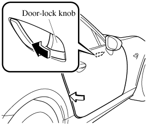 To lock any door using its door-lock knob from the outside, press the door-lock knob to the lock position and close the door (holding the door handle in the open position is not required).