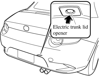 The trunk lid can be closed when the doors are locked with the key left in the vehicle. However, to prevent locking the key in the vehicle, the trunk lid can be opened by pressing the electric trunk lid opener. If the trunk lid cannot be opened despite doing this procedure, first push the trunk lid completely closed, then press the electric trunk lid opener to fully open the trunk lid.