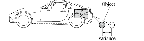 When there is a steep upgrade (downgrade) behind the vehicle, the object displayed on the screen appears farther (downgrade: closer) than the actual distance.