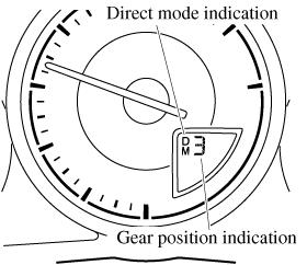 While in direct mode, the D and M indication illuminate and the gear position in use is illuminated.