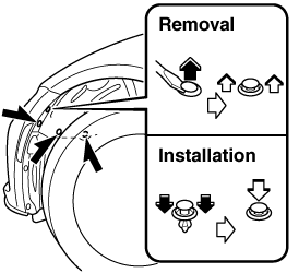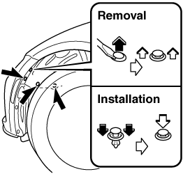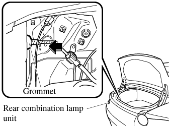 To provide a hole for inserting a finger to remove the rear combination lamp unit later in the procedure, pinch the top and bottom of the grommet shown in the figure and press it out of the hole in the direction of the rear combination lamp unit.