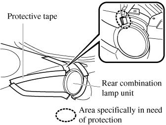 Apply protective tape as shown in the figure. Otherwise, the rear combination lamp unit will contact the body and may scratch or damage it.