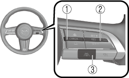 When the TJA switch is pressed while the Mazda Radar Cruise Control (MRCC) or the Mazda Radar Cruise Control with Stop & Go function (MRCC with Stop & Go function) system is operating, the TJA operates. In addition, when the MRCC switch is pressed while the TJA is operating, the Mazda Radar Cruise Control (MRCC) or the Mazda Radar Cruise Control with Stop & Go function (MRCC with Stop & Go function) system operates.