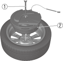 1. Secure the damaged tire to the vehicle using the spare tire hold-down bolt removed when removing the spare tire.