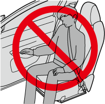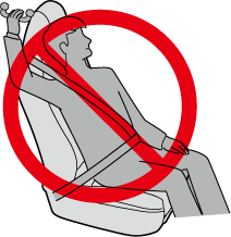 Adjust the front seats as far back as possible and always sit upright against the seatbacks with seat belts worn properly.