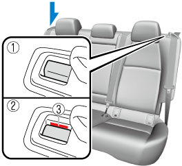 If the red indication is visible behind the push knob, it means the seatback is not locked. If the vehicle is driven without the seatback locked, it could fold down suddenly and cause an accident.