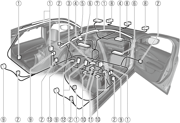 8. Crash sensors, and diagnostic module (SAS unit)