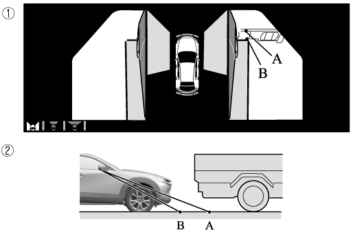If there is a steep up or down grade in the road at the front or rear of the vehicle, obstructions picked up by the camera can appear farther or closer than the actual distance from the vehicle.