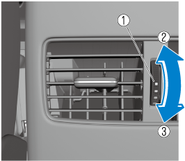 The figure indicates the air vent on the left side of the instrument cluster. The operation direction for the air vent on the right side of the instrument cluster is symmetrical with the air vent on the left side.