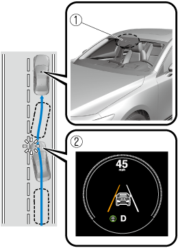 The HBC determines the conditions in front of the vehicle using the Forward Sensing Camera (FSC) while driving in darkness to automatically switch the headlights between high and low beams.