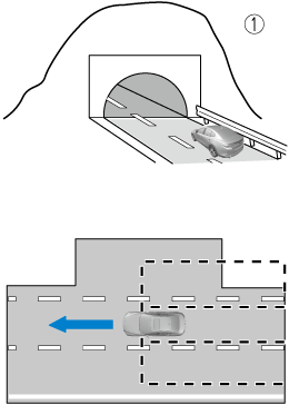 • Under the following conditions, the rear side radar sensor cannot detect target objects or it may be difficult to detect them.
