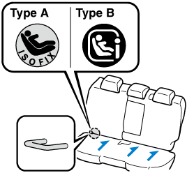 The markings above the ISOFIX/LATCH*1 lower anchors indicate the locations of the ISOFIX/LATCH*1 lower anchors for the attachment of a child-restraint system.