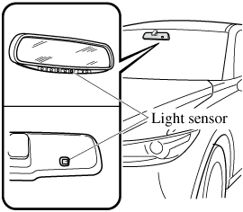 • The auto-dimming function is canceled when the ignition is switched ON and the selector lever is in the R position.