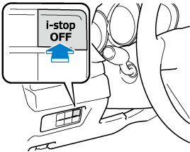 When pressing the switch, the i-stop function stops and the i-stop OFF switch indicator light turns on. If the switch is pressed again, the i-stop function becomes operational and the i-stop OFF switch indicator light turns off.