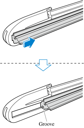 5. Insert the end of the new blade rubber into the groove of the blade holder until it contacts the end of the blade holder.